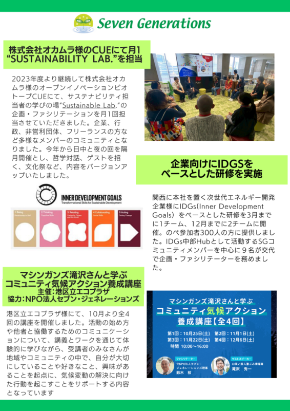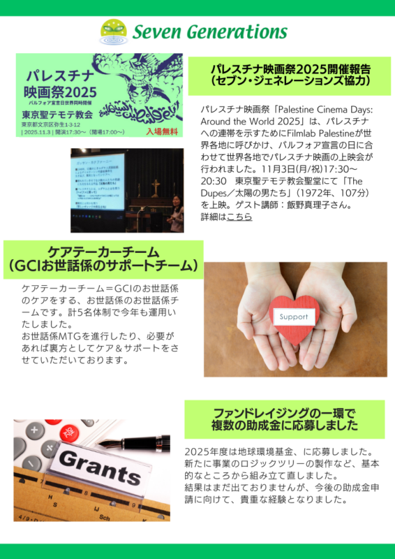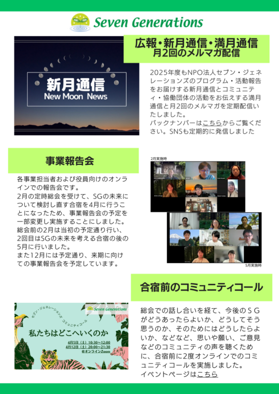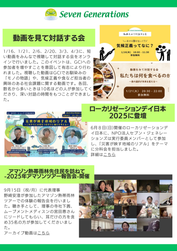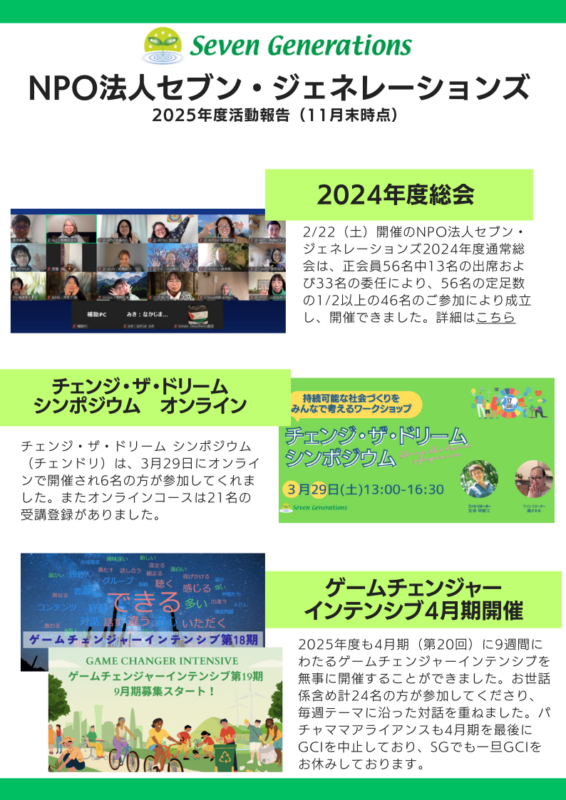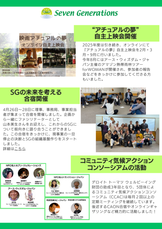 NPO法人セブン・ジェネレーションズ2025年度活動報告