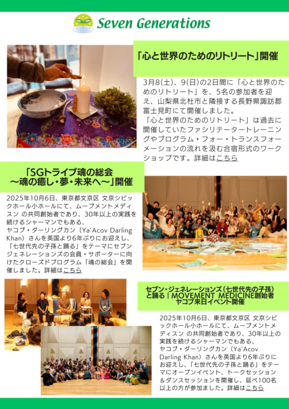 いつもNPO法人セブン・ジェネレーションズに心を寄せていただき、ありがとうございます。