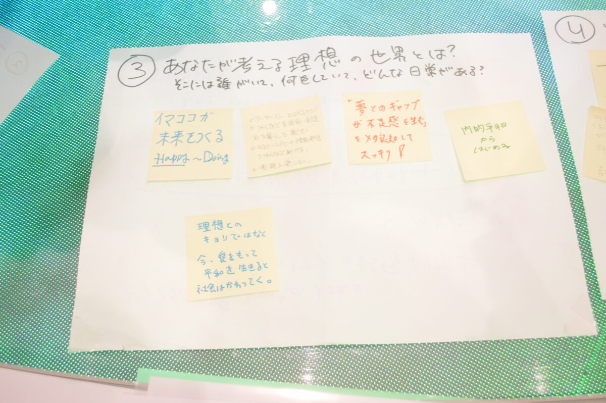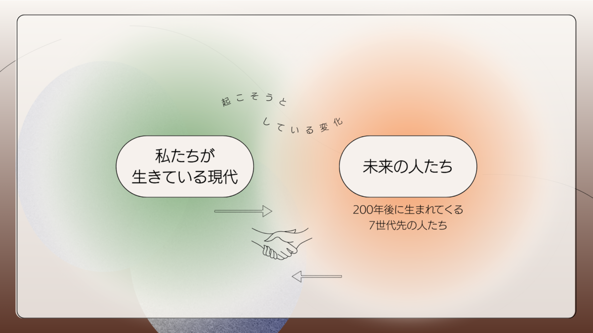 - セブンジェネレーションズが印象的でした。未来側から今の人にどんな言葉をかけるのかを擬似体験し、今までの思考では出てこなかっただろうと思う言葉や感覚がでてきたのが新鮮でした。普段関わることが少ない方との交流が凝り固まった視点を広げてくれ、とても充実した時間でした。素敵な企画を本当にありがとうございました!!