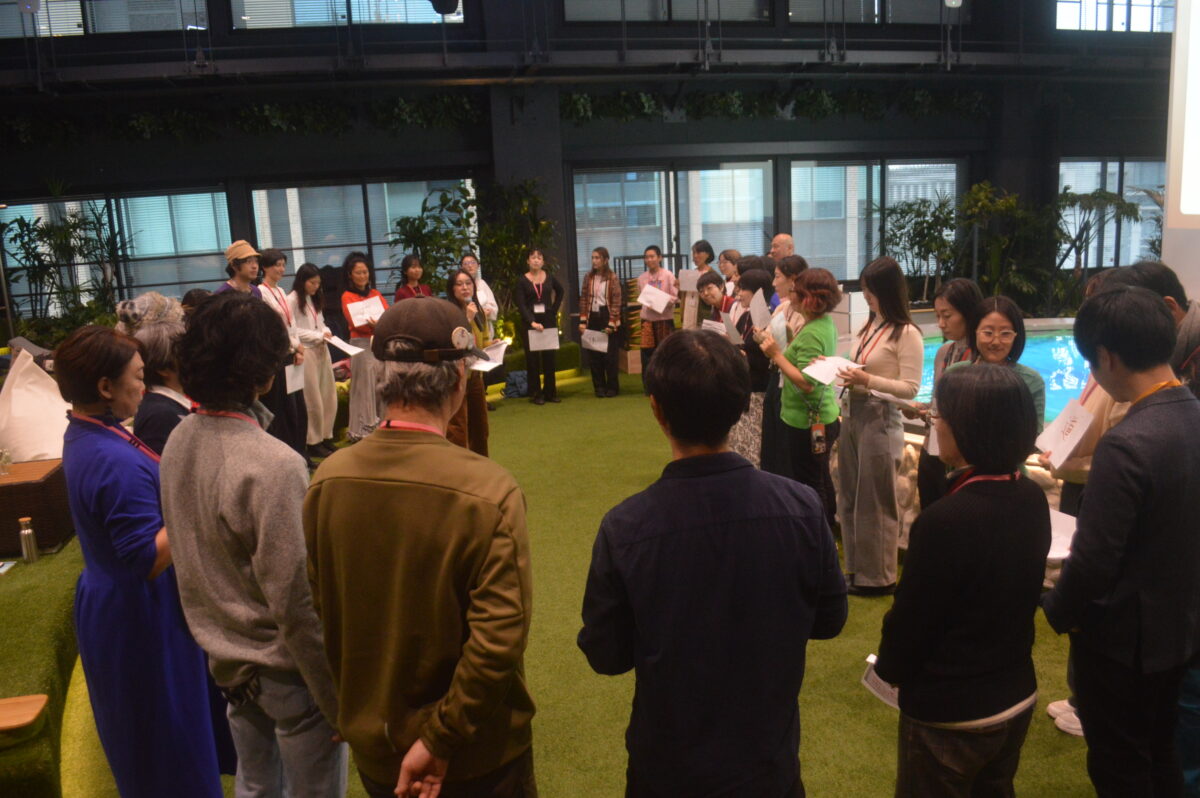 最後は「終わりの輪」を作り、一人ひとりが今日の体験で得た感覚や感情を共有しました。 今回のフォーラムは、多様な分野で活動するひとりひとりが、強い目的意識で行動するだけでなく、自分の内側に意識を向け、そこから他者や社会とのつながり方、向き合い方を考える貴重な機会となりました。